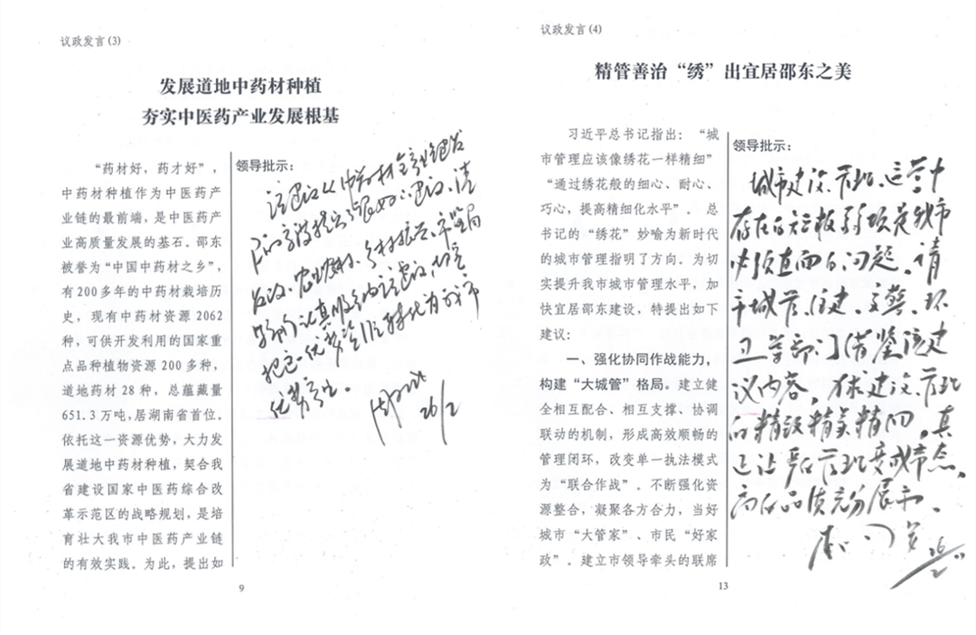 周玉凡在政协委员金艳琳《发展道地中药材种植夯实中医药产业发展根基》的议政发言件上批示:该建议从中药材全产业链发展的高度提出了很好的建议,请发改、农业农村、乡村振兴、市监等部门认真吸纳该建议,切实把这一优势资源转化为我市优势产业。
