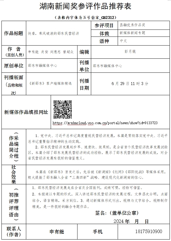 邵东市融媒体中心2023年度湖南新闻奖报送作品公示
