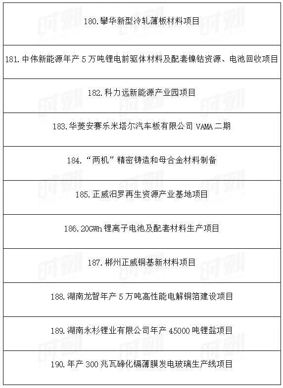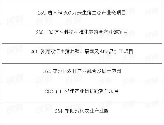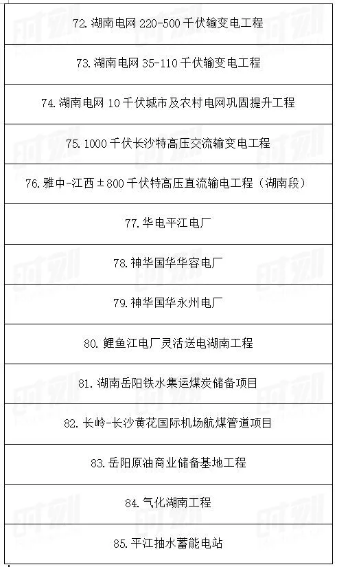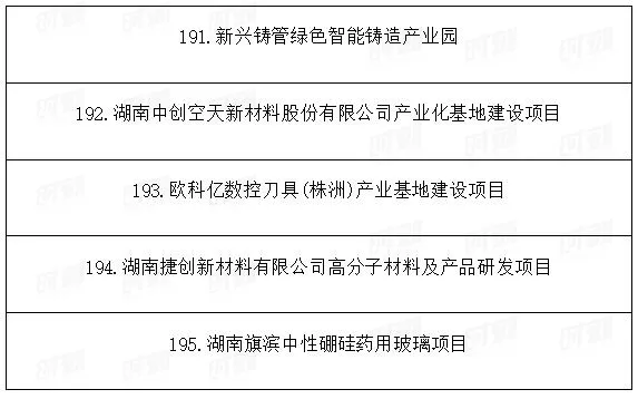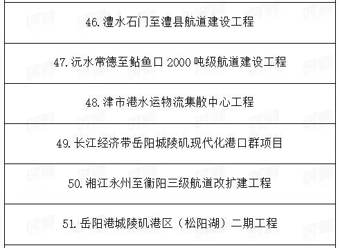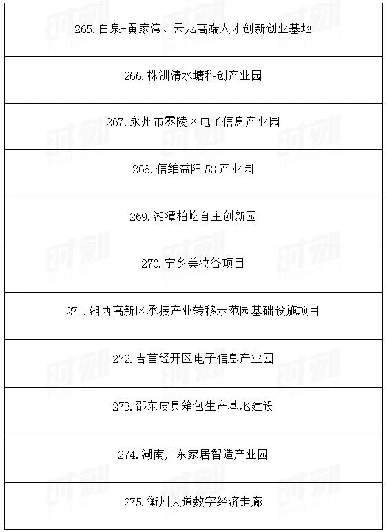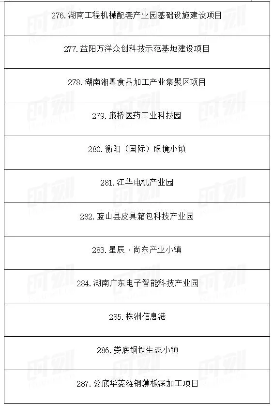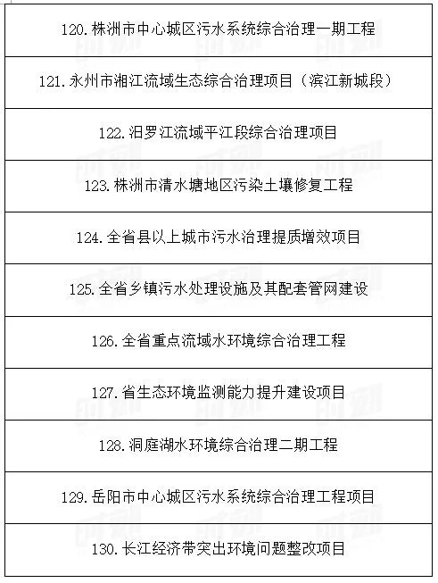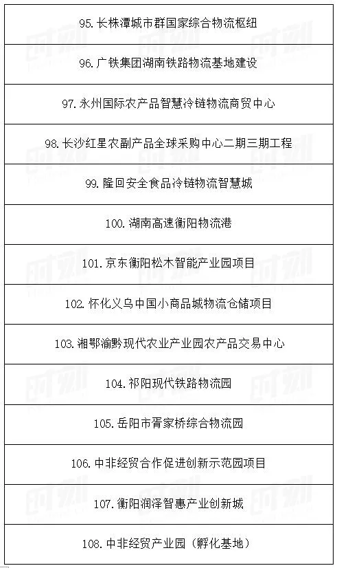 其中,今年新开工项目100个,包括长赣铁路、华菱汽车板二期、益阳至常德高速公路扩容、中国商飞长沙航空产业及研发基地项目等;续建201个,包括常益长铁路、马栏山视频文创产业园、蓝思电子信息、三安半导体、芙蓉学校等。301个省重点建设项目名单一基础设施(119个)