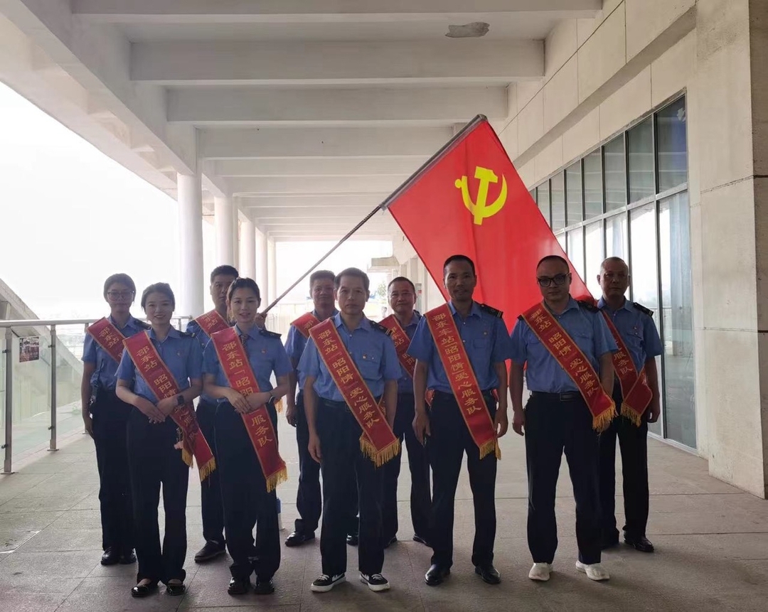 根据客票预售情况,邵东高铁站优化旅客进站高峰预警和快速处置机制,在国庆黄金周期间每班增加4名安检人员,动态增开了安检通道或采用双手检方式,提高旅客进站效率,防止客流聚集;为方便重点旅客出行,车站以“昭阳情爱心服务队”为骨干,组织党员和团员青年在国庆黄金周期间为重点旅客志愿服务,帮助重点旅客快捷进站、乘车、出站。