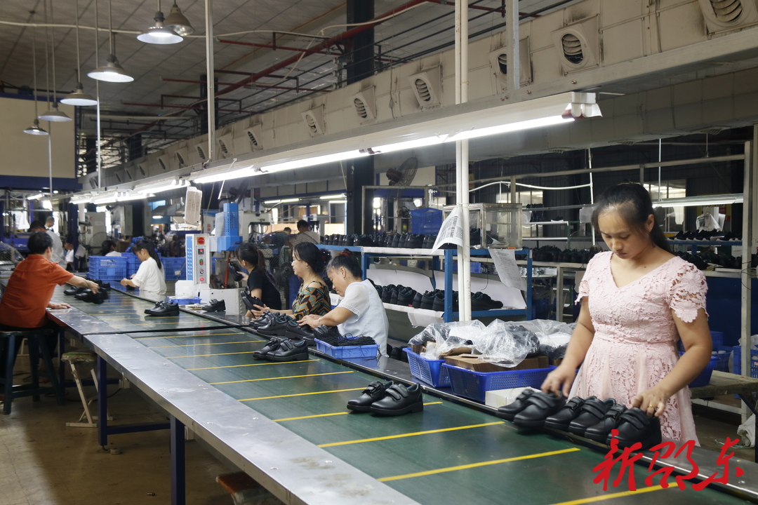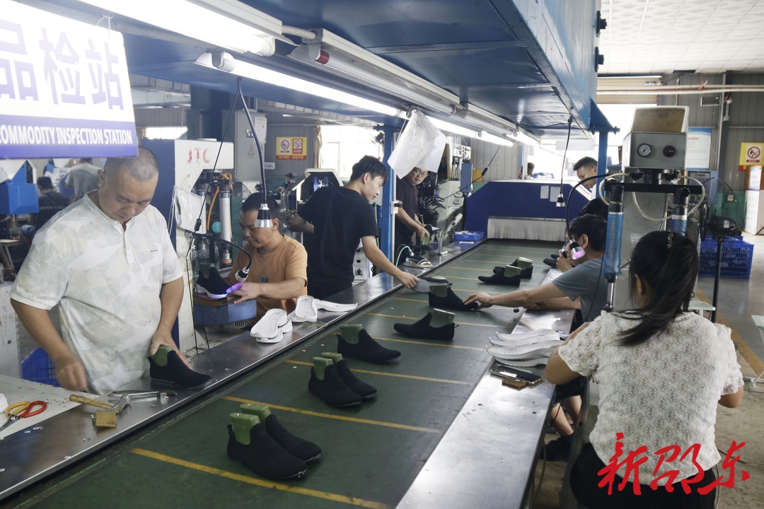 10月5日,走进湖南健泰鞋业制造有限公司的生产车间里,映入眼帘的是一片热火朝天的劳动场面,工人们正在加班加点,赶制一批准备发往德国的订单。