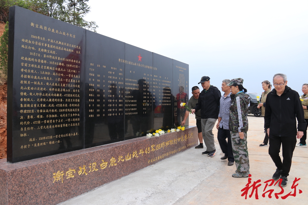新邵东客户端10月9日讯(记者 刘意忠 通讯员 黄一骏)10月8日,中国人民解放军原45军158师子弟来到邵东市灵官殿镇白鹿山,举行纪念衡宝战役白鹿北山战斗75周年暨白鹿北山战斗牺牲烈士英名墙落成仪式。邵东市退役军人事务局、邵东市文旅广体局、灵官殿镇、白鹿村等单位相关负责人以及当地党员志愿者、少先队员代表一起参加仪式。