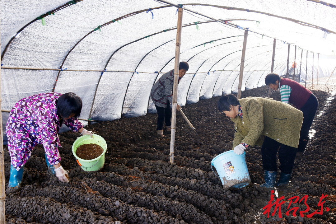 在邵东市流泽镇仁泉新村羊肚菌示范基地,黑色大棚一个挨着一个延伸开来。村民们分工协作,松土、播撒菌种、覆土洒水,一派忙碌景象。