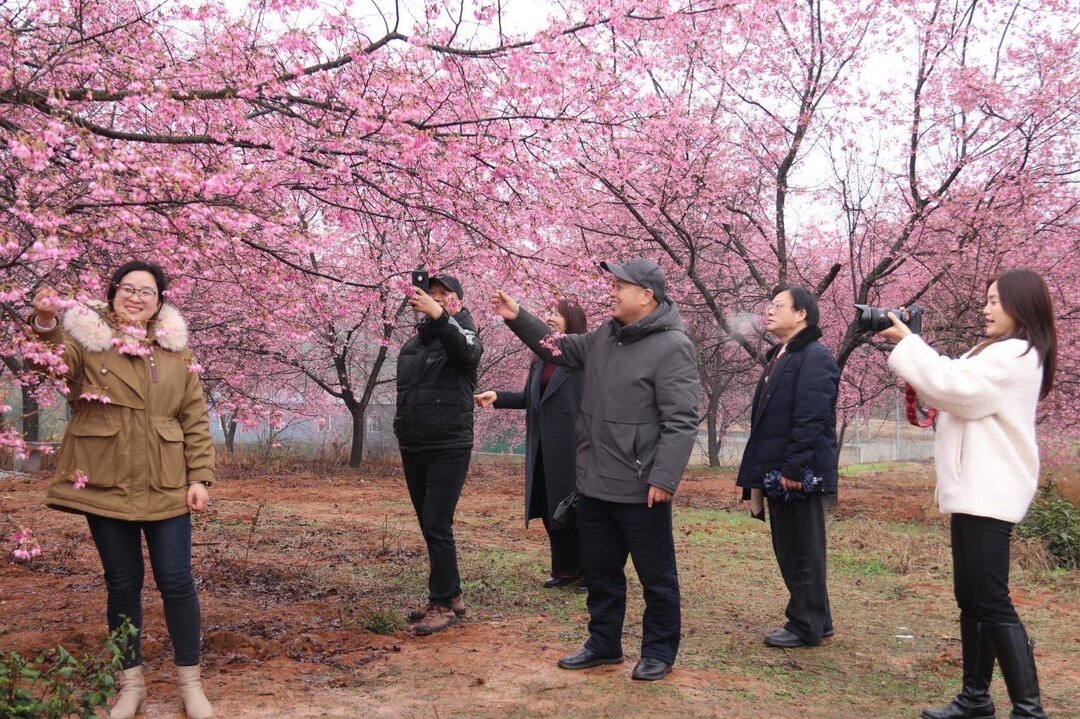 魏家桥樱花园原是一片荒山,2016年,当地村民通过土地流转,在山坡上开始栽种樱花。目前,樱花种植面积已达1000余亩,当年的荒山已经蝶变成花园,成为邵东乃至邵阳乡村旅游的一张亮丽名片。每当樱花盛开时,前来赏花的游客络绎不绝,带动了当地农产品销售,为村民增加了经济收入。魏家桥镇以樱花园、桃花基地、油菜花基地为依托,大力推进农文旅融合发展,迸发出乡村振兴的强大活力,让采风团成员激动不已。