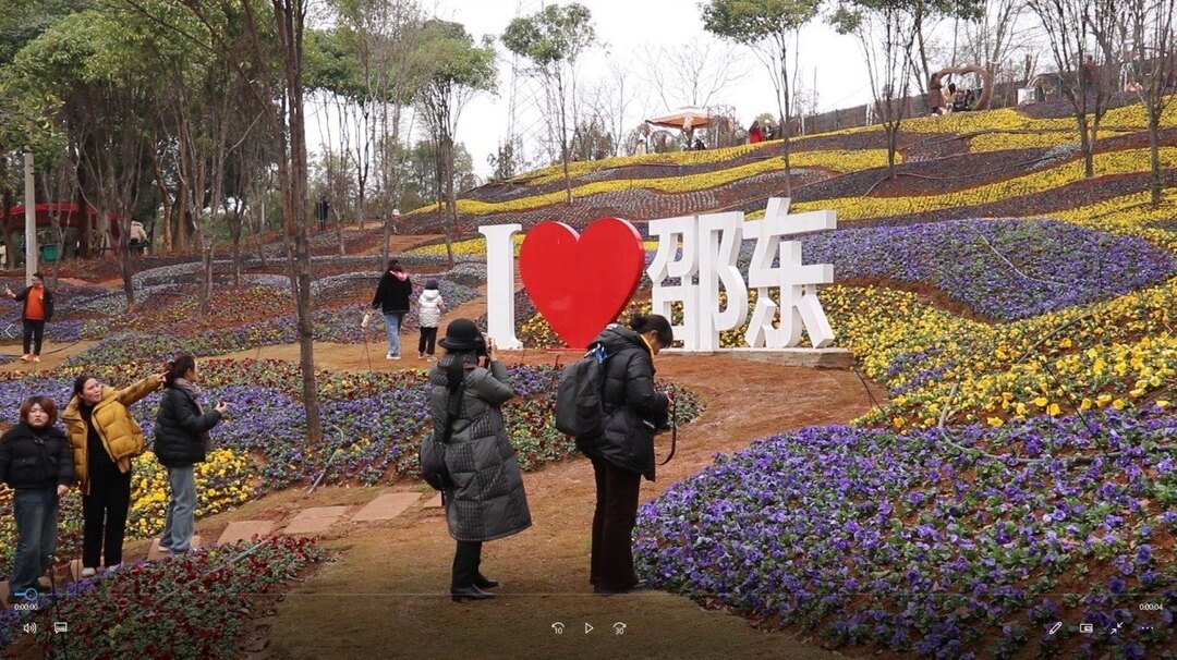 当天下午,采风团来到位于黑田铺镇的玫瑰谷。只见遍地盛开的三色堇交织出层层波纹,色彩斑斓,美不胜收。大家徜徉在花海中,感受着春天的浪漫与热情。花海中的“我爱邵东”的文创风景高度契合“爱我邵东”的情感共鸣,让采风团成员倍感振奋。大家纷纷表示,要将此次采风的所见所闻所感付诸笔墨,创作出更多优秀的作品,讲好乡村振兴故事,传播邵东好声音,为邵东农文旅融合发展贡献力量。