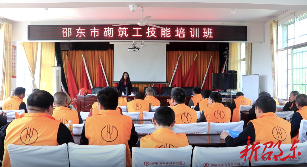 新邵东客户端4月4日讯(记者 邱文丽)4月3日,邵东市第一期砌筑工培训在水东江镇万祝村开班。50名农村建筑工匠参加培训。