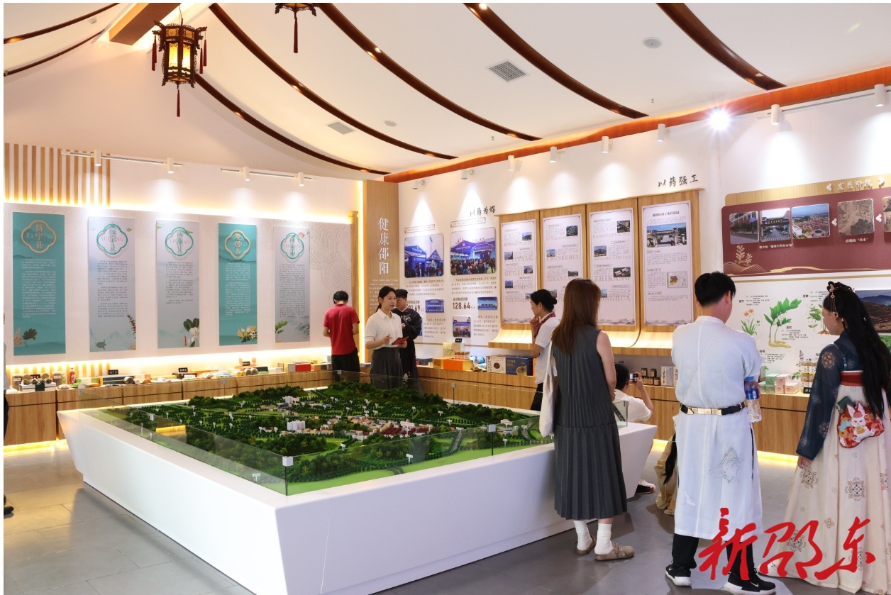新邵东客户端6月11日讯(记者 张平华)6月9日至10日,邵阳(廉桥)中医药产业“南国药都”展馆亮相长沙铜官窑古镇中医药文化街。展馆共设置了入口展示区、“南国药都”展示区、“健康邵阳”展示区、“中药出海”展示区及互动体验区五大区域。集中展出邵东市、新邵县、隆回县、绥宁县、新宁县、城步苗族自治县、武冈市7个县(市)的千余种特色中医药产品,其中邵东市中医药产品达800余种,吸引了大量游客驻足参观体验。