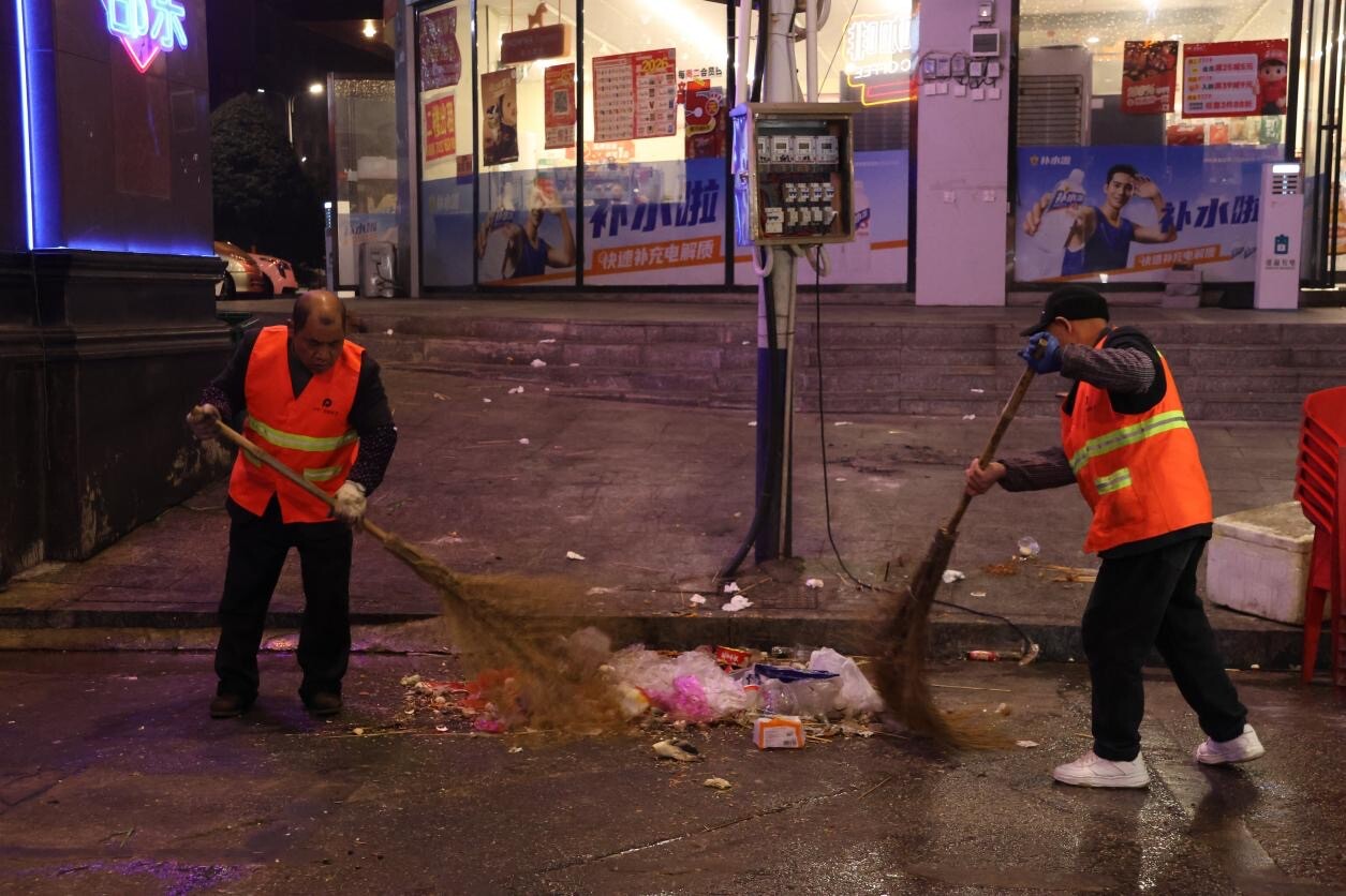 12月31日凌晨5点,夜色尚未褪去,刚刚结束喧嚣的邵东文旅美食城夜市里,环卫工人姚作球和同事们已开启一天的忙碌。清扫、收集、冲刷……一系列动作娴熟而迅速,只为在朝阳升起前,还给市民一个洁净如新的街道,用坚守与汗水为城市擦亮岁末年初的洁净底色。“我们环卫工人凌晨三、四点开工是常事,把街道扫得干干净净,让人们走出来有一种舒适感,这是我们环卫工人的本职工作。”姚作球朴实的话语里是满满的责任感。