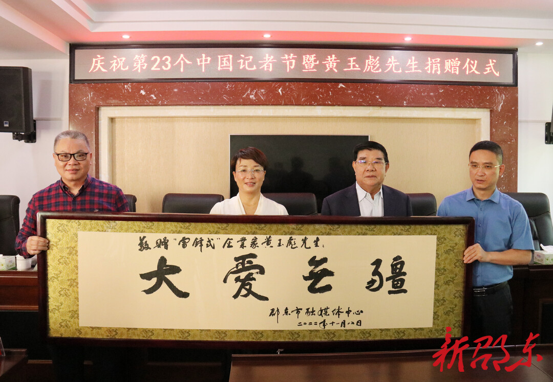 新邵东客户端11月8日讯(记者 刘意忠 曾超众)11月8日上午,邵东市庆祝第23个中国记者节暨黄玉彪先生捐赠仪式在邵东市融媒体中心举行。邵东市委常委、宣传部部长罗莉出席,并送去节日的问候和慰问金。爱心企业家黄玉彪先生到会祝贺,并现场捐赠10万元,资助市融媒体中心的乡村振兴联系点——双凤乡新福村的乡村振兴工作和改善市融媒体中心的办公条件。