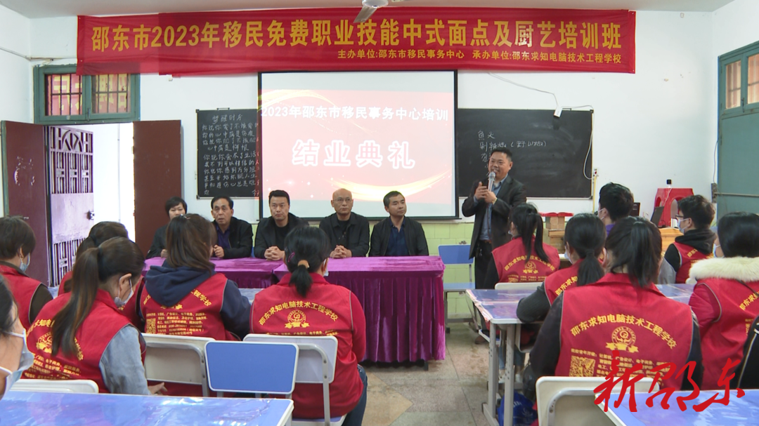 新邵东客户端5月11日讯(记者 姚天启)5月11日,由邵东市移民事务中心主办,邵东求知电脑技术工程学校承办的2023年第一期移民免费职业技能中式面点及厨艺培训班顺利结业。