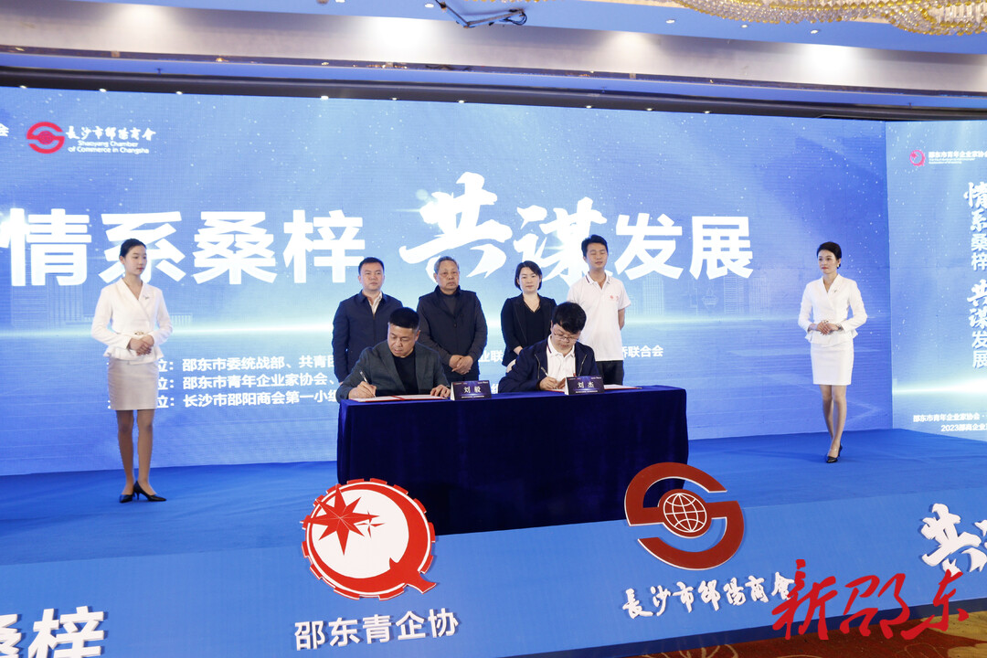 会上,邵东青年企业家协会与长沙市邵阳商会签署了战略合作协议。双方将本着“发挥优势、相互促进、长期合作、互利互赢”的原则推进战略合作,努力扩大双方会员企业合作的深度和广度,提高双方会员企业经济效益,实现互利共赢。