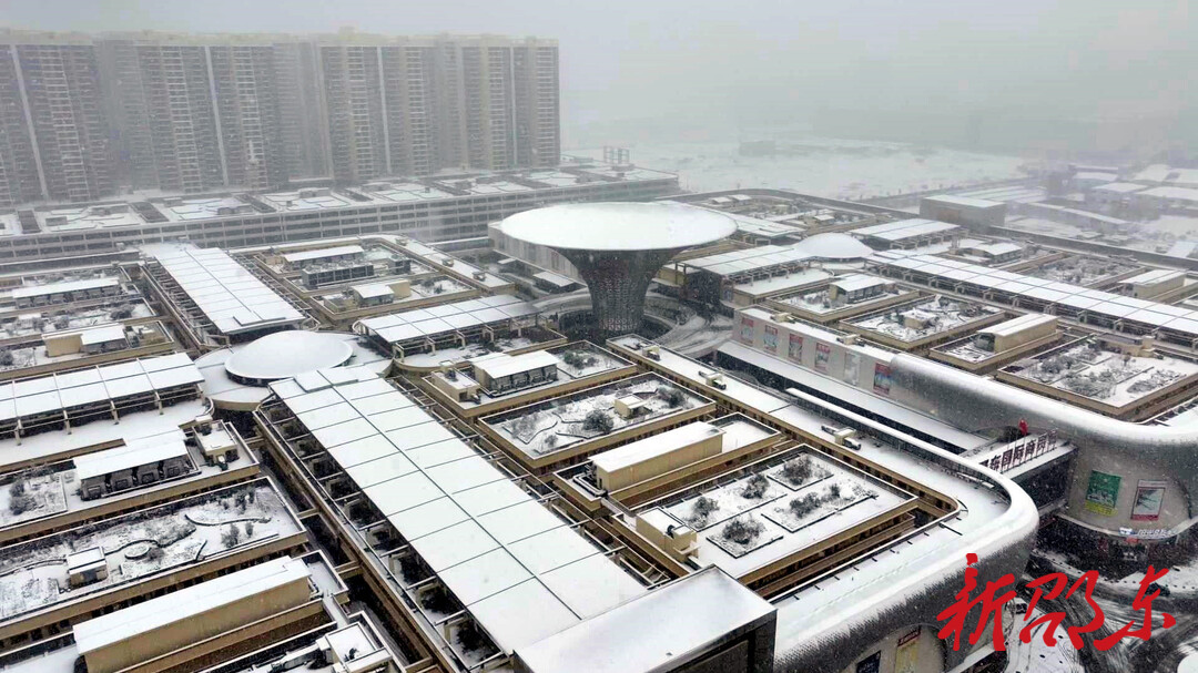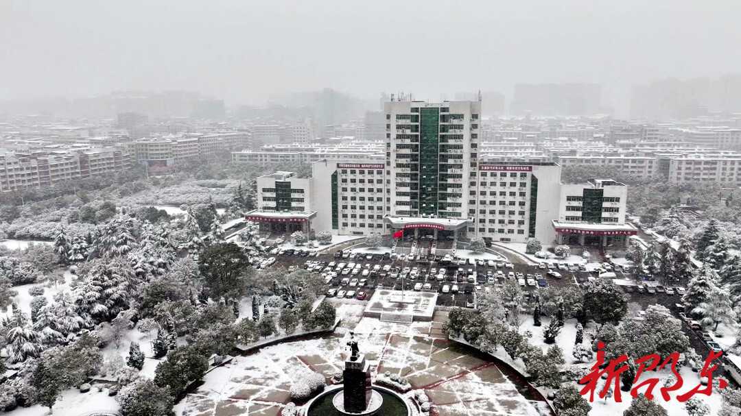 上午10点,雪花纷纷扬扬,整个城区银装素裹,皑皑白雪与建筑、树木相映成趣,别有一番风韵。通过航拍从高空俯瞰,公园、大地、楼宇、车顶都盖上了一层厚厚的白雪,高高低低错落有致,宛若一幅天然水墨画呈现在市民的眼前,如梦如幻,给人一种惊喜。